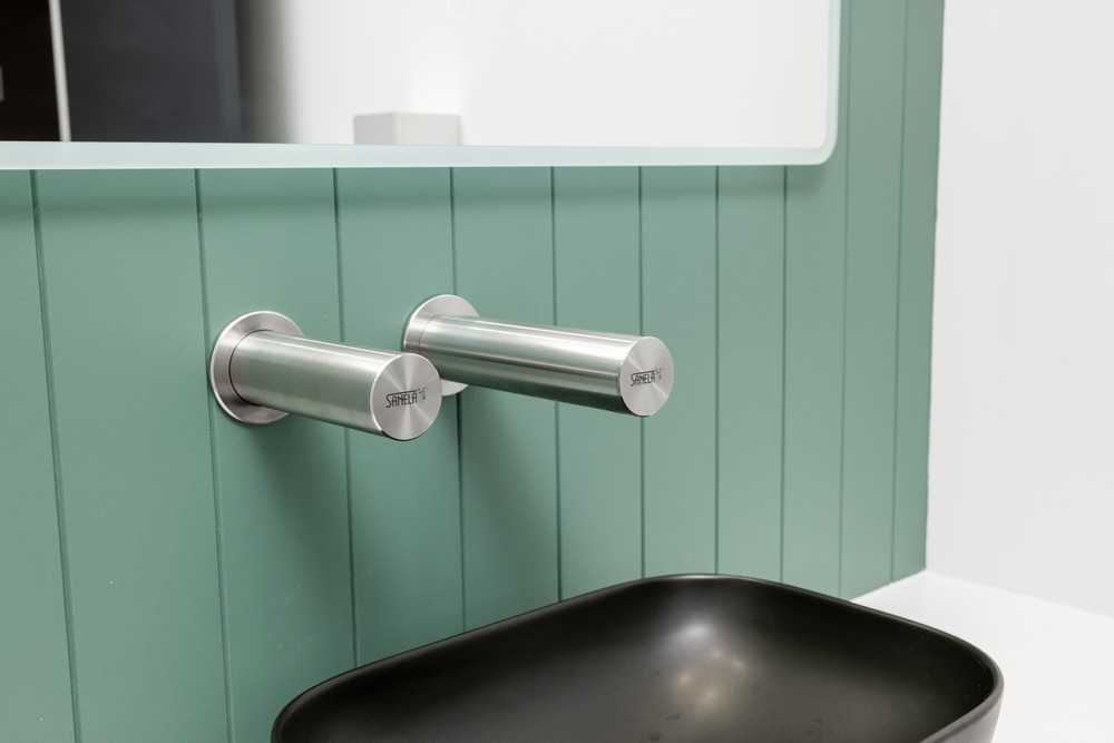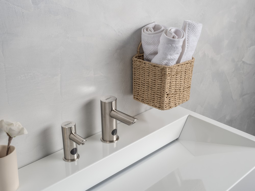 Sanela nu uită nici de sustenabilitate. Bateriile sunt echipate cu perlator economic care limitează debitul la 6 litri pe minut, economisind apă fără a afecta confortul utilizatorului. Dozatoarele, la rândul lor, reduc consumul de săpun, ducând la o utilizare mai eficientă a detergentului.