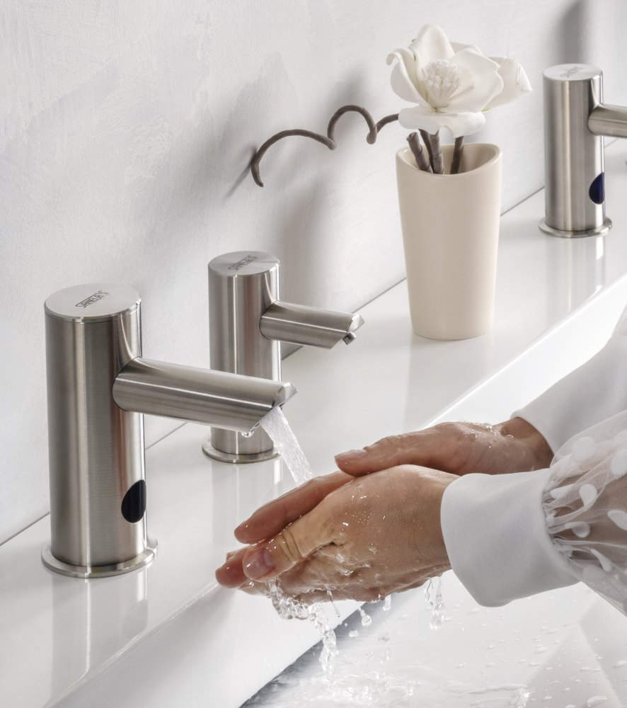Atât bateriile, cât și dozatoarele funcționează pe bază de senzor, eliminând contactul cu suprafața. Astfel, utilizarea este extrem de igienică și confortabilă. Clătirea automată igienică a bateriilor ajută suplimentar la prevenirea multiplicării bacteriilor precum Legionella.