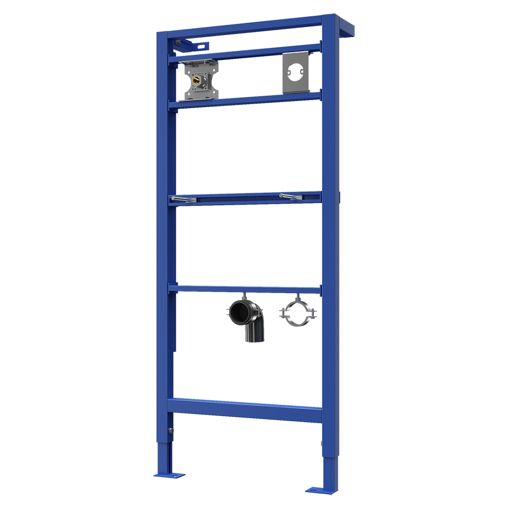 SLR 24 - cod 08240 - cadru de montaj, suporturi pentru montarea robinetelor automate si dozatoare de sapun, șuruburi M8 pentru fixarea lavoarului, suport de scurgere cu cot Ø 50 mm, material de fixare