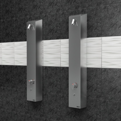 Panou de duș din oțel inox cu buton piezo și mixer termostatic, 24 V DC