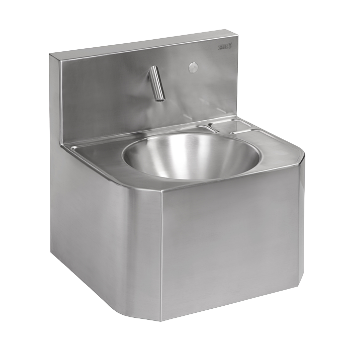 Lavoar din oțel inox cu baterie cu buton piezo, design antivandal, pentru apă rece sau premixată, 6 V